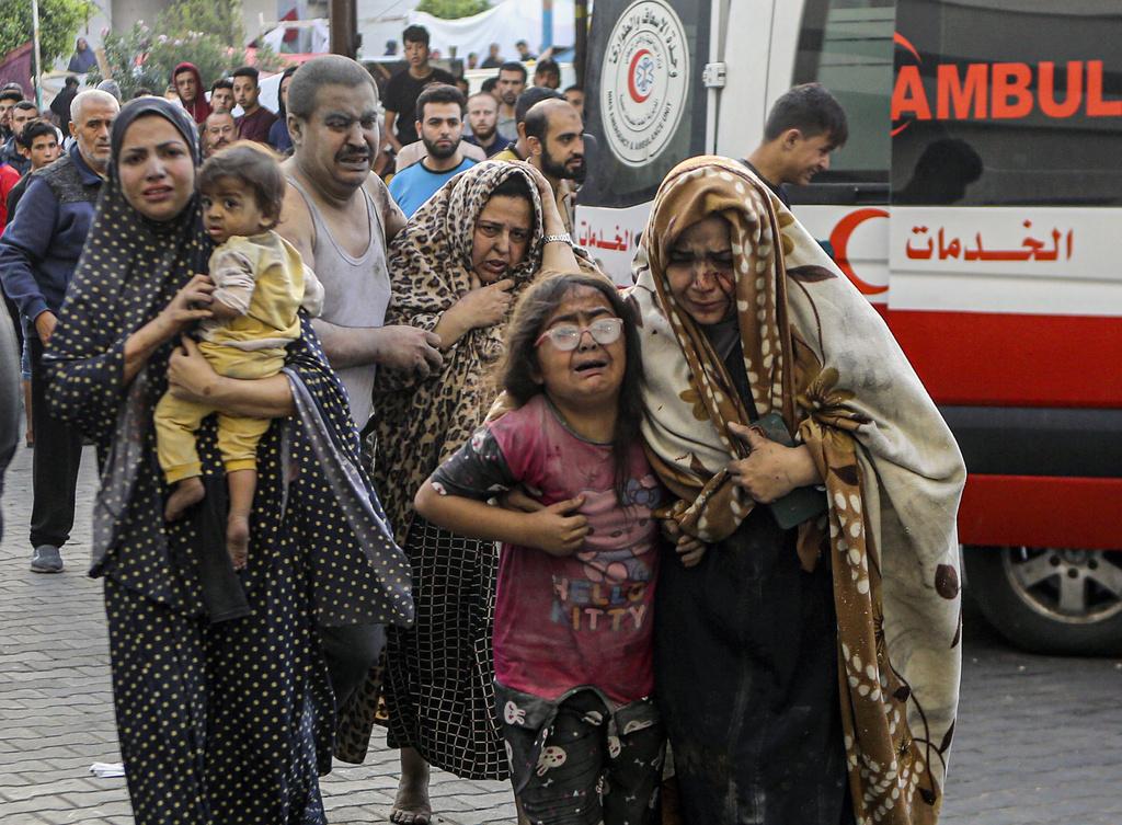 以巴衝突|以軍空襲中受傷的加沙城居民被送到醫院接受治療。(美聯社)