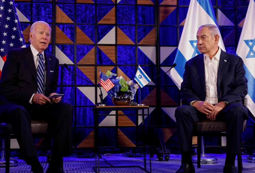 拜登與內塔尼亞胡討論沙加醫院遇襲事件,拜登稱根據他所見,醫院爆炸「似乎不是以方所為,而是其他組織」。(路透社)