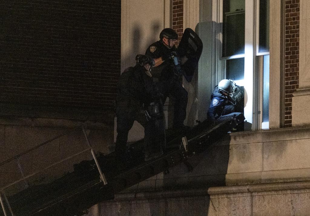 哥倫比亞大學曼克頓校區的數十名示威者,昨在校內漢密爾頓大樓(Hamilton Hall)前組成人鏈,封鎖入口,並在正門掛起橫額,上面寫有一名被以軍殺害的6歲巴勒斯坦小童名字。示威者表示學校滿足其要求才會離開,其要求包括哥大停止與以色列相關企業的資金往來、披露所有金融資產、赦免抗議學生。紐約警察昨晚進入哥倫比亞大學校園,展開驅散示威者和逮捕行動,期間出動配備長梯的特別車輛,經二樓的窗戶進入漢密爾頓大樓清場,約2小時後完成清場行動,約100人被捕。警方稱行動中有用閃光彈,但沒施放催淚氣體。