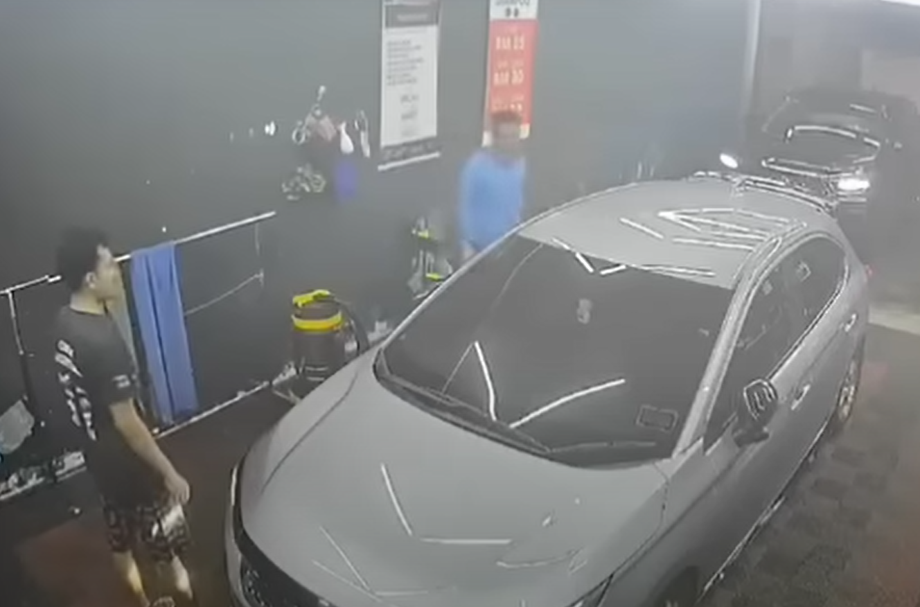 閉路電視片段顯示,一名綠衫男子早在店外徘徊,期間曾嘗試打開一輛在店外的私家車車門不果,之後便走進洗車店內。綠衫男進店後,二話不說坐上事主(藍衫)的本田思域內。