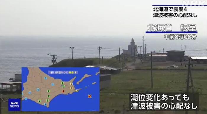 北海道釧路町在6月19日早上8時8分發生6.1級地震。根室戶外監控鏡頭出現震動。(互聯網)
