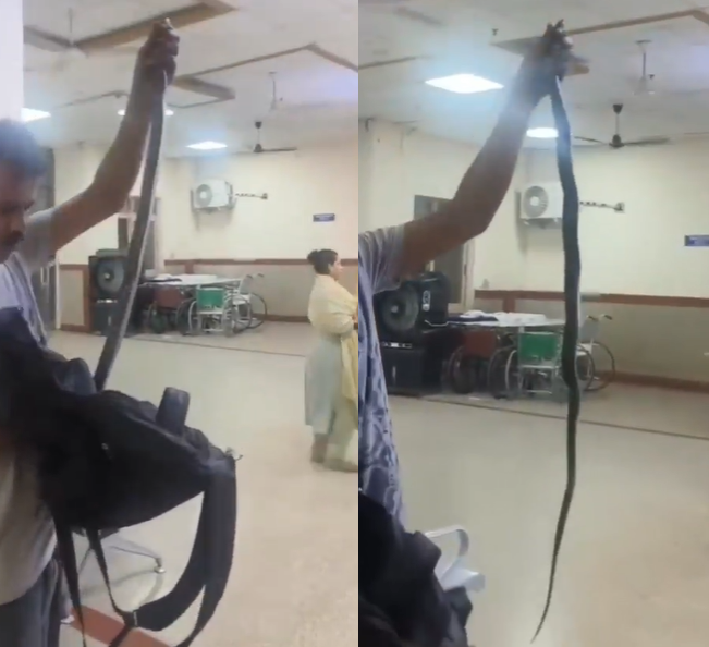 隨後,他打開背包拉鍊,從中取出一條長達約1.21米的活蛇,嚇得在場的病患和醫護人員紛紛退避。