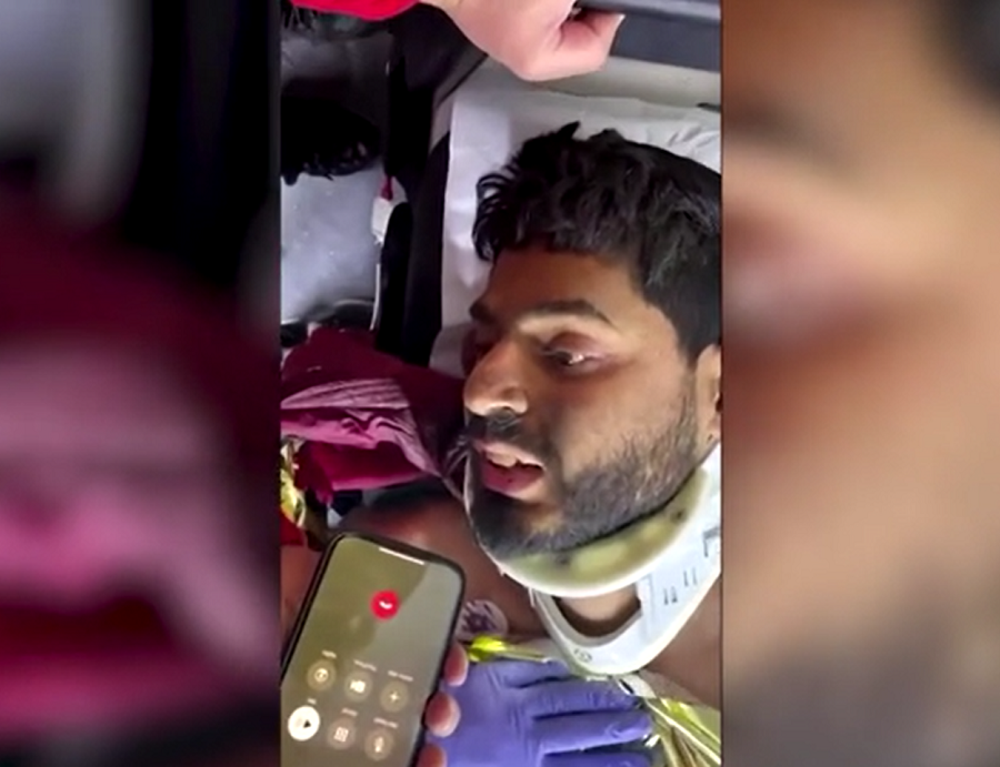 Mustafa獲救後與親友通電話報平安。(互聯網)