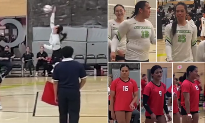 變性人參加女子運動比賽一直惹來爭議,男變女後氣力仍大對女運動員不公平。加拿大一場大專院校女子排球比賽最近成為焦點,因兩隊伍共有5名變性人參賽,被質疑是否男子比賽。片段可見5名參賽者虎背雄腰,扣球式發球更是威力強勁,而出生是女性的隊友卻只坐在後備席。