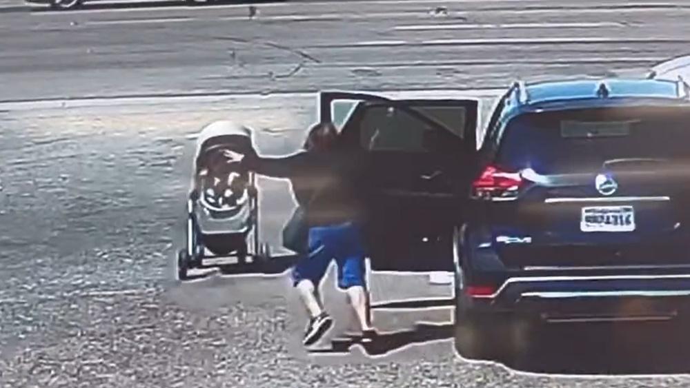 Thank god a man catches the stroller before anything bad happens to this lady’s baby. 😱 pic.twitter.com/XdEPC6tNb4