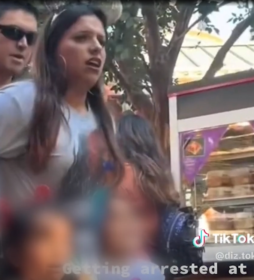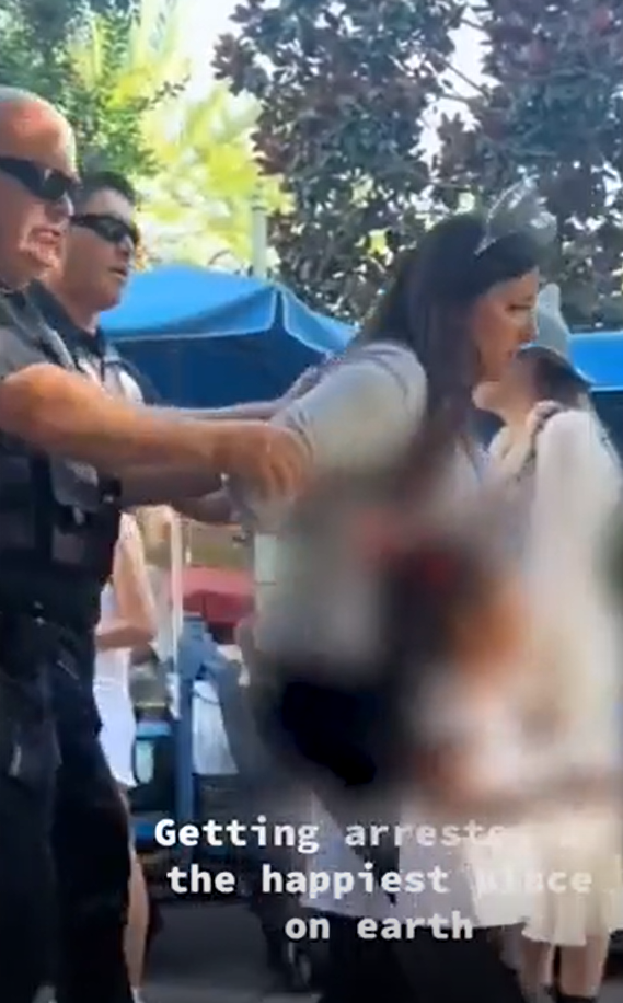 事發加州迪士尼Disney California Adventure Park,一名女子周三(25日)在園內被捕,片段可見她被警員押解,一邊叫嚷說「你弄痛我了,你他媽的弄痛我了」,並以西班牙語說「救命」。她頭上還戴著閃令令的米奇老鼠耳朵,兩名小女孩則在她身邊哭泣。