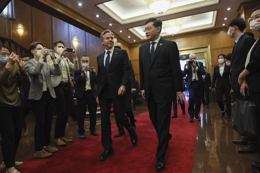 秦剛接見訪華美國務卿布林肯。(美聯社)