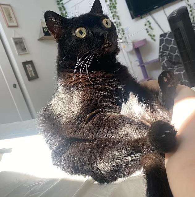 加州女子Mia 3年多前在住家後面的田間發現一隻3星期大的貓咪,便收養牠,並取名Jinx。Jinx長大後,Mia注意到即使牠已停止發育,但雙眼仍愈來愈大,貓爪亦比一般貓兒大,使得牠走路時看來有些搞笑。