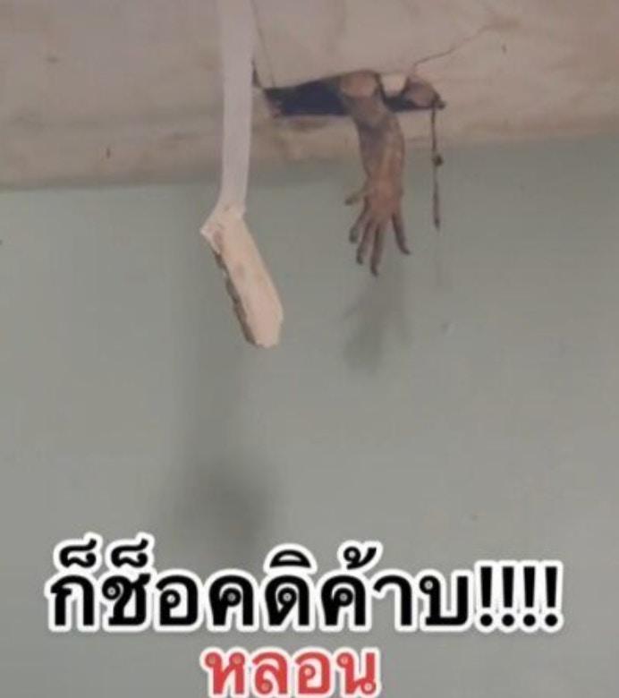 一宗真實「靈異」事件在泰國成為熱話。一名美女日前驚見天花板伸下一隻怪手,嚇得她花容失色。美女沒有眼花,怪手確實存在,儘管也沒有發生藏屍命案,事件也不涉及鬼神,但對部分人而言,真相可能比有鬼更加可怕。