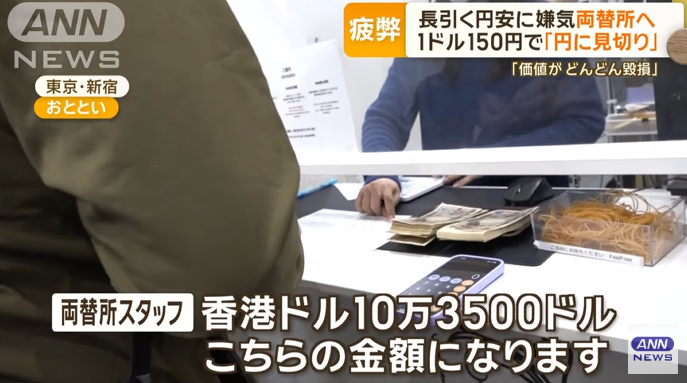 全日本新聞網(ANN)報道,近日有日本人選擇將資金轉換成外幣,以尋求投資機會和資產保值。報道訪問了一名在新宿站附近找換店,把200萬日圓兌換成港元的個體戶,換到約10萬零3,500港元。