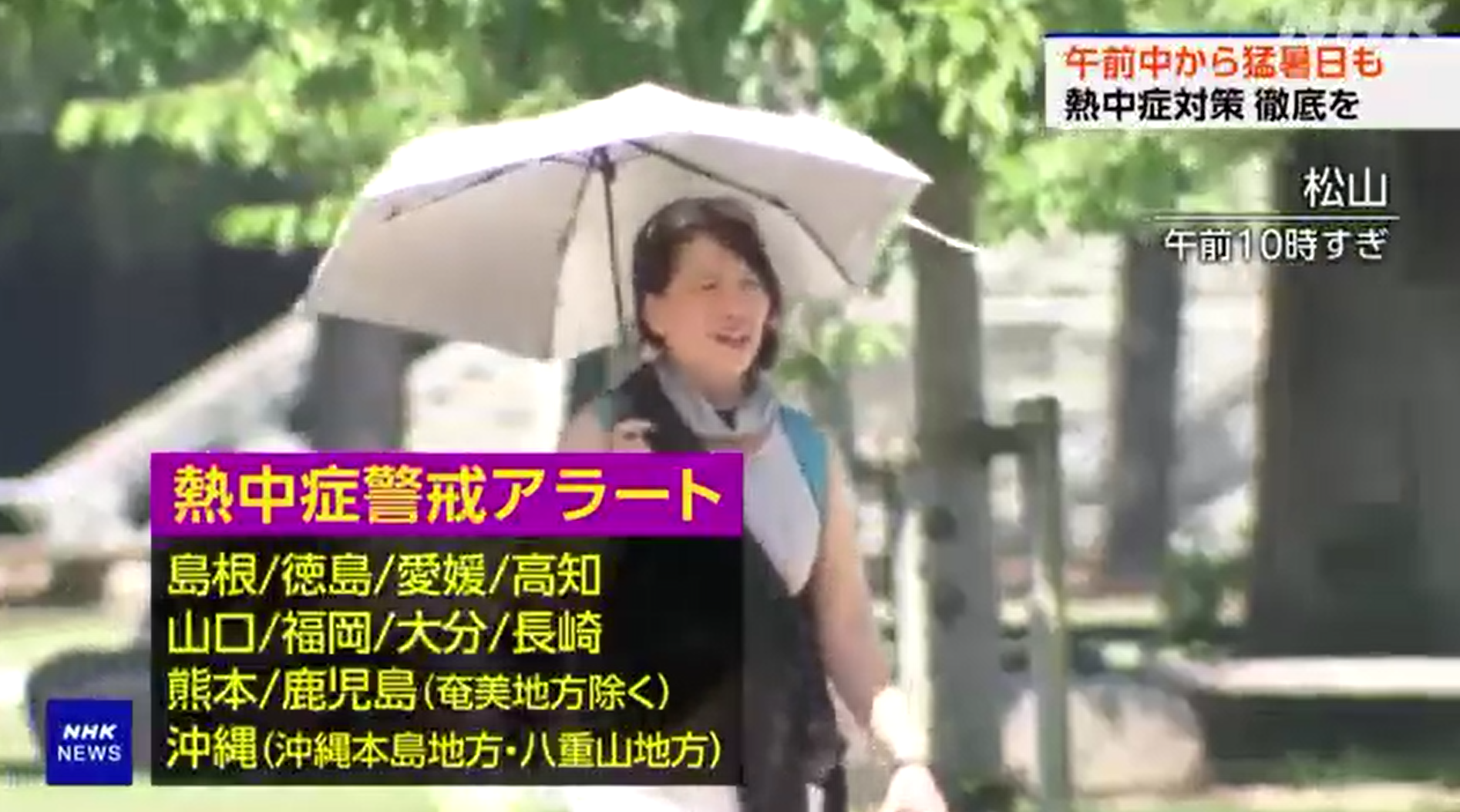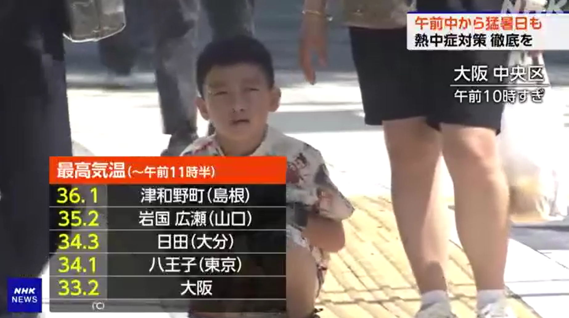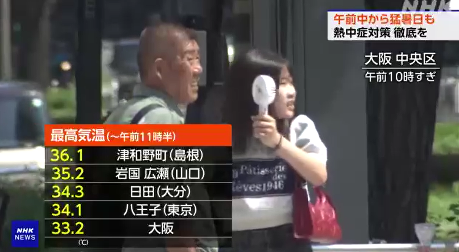 預料周一京都將達37度,岡山、奈良、名古屋等地36度,熊本、前橋等地35度,而日本各地高溫趨勢預計持續至少一個月。