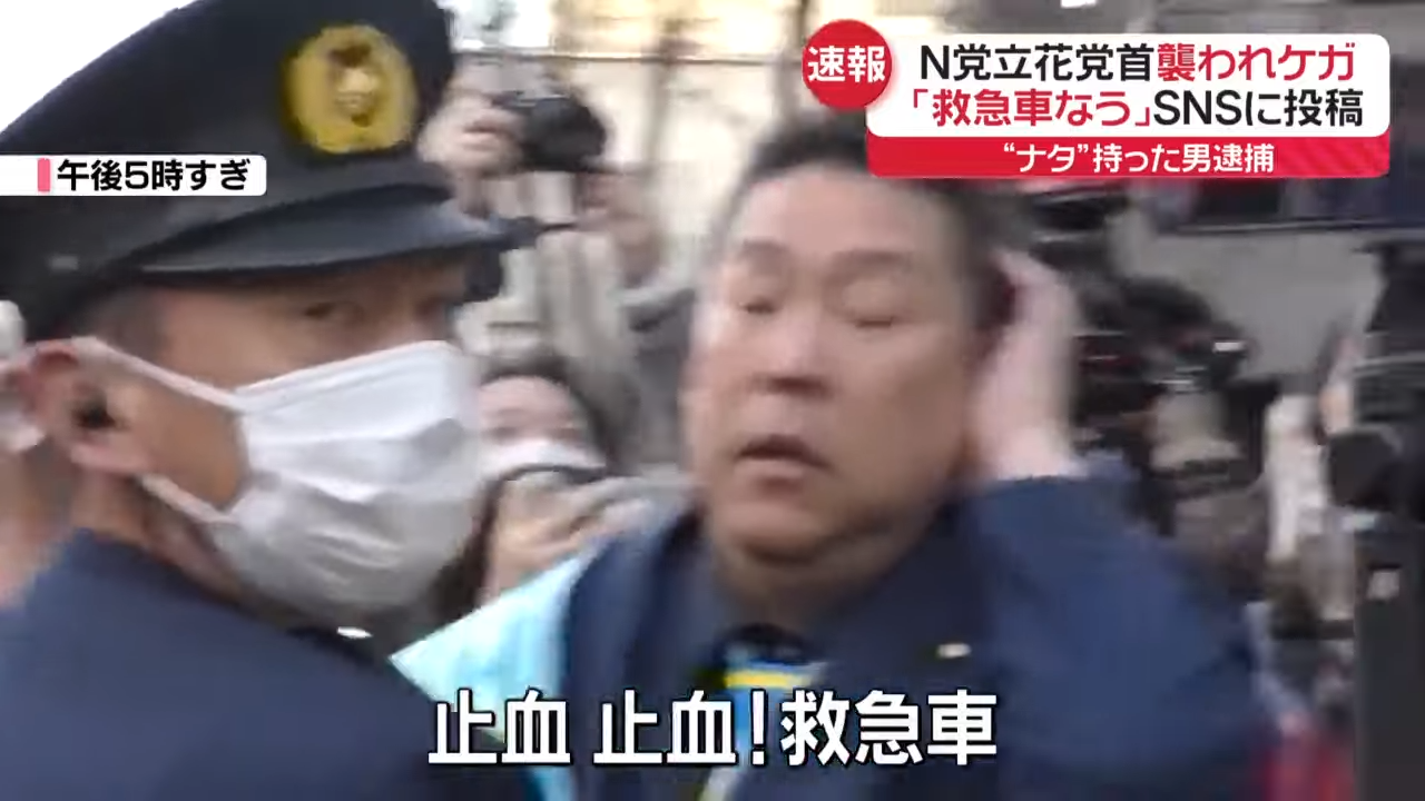 日本NHK黨黨魁街頭遇襲左耳受傷 持刀兇徒當場被捕