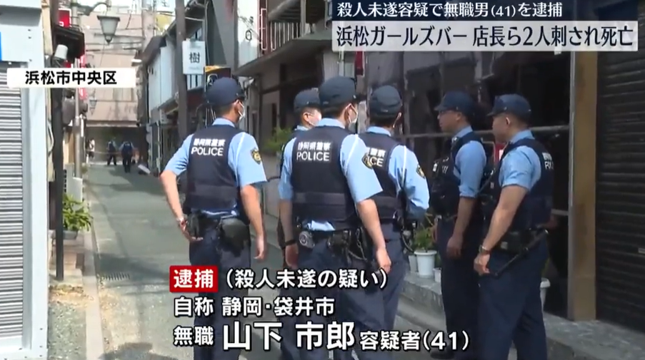 日本靜岡縣濱松市一間女子酒吧(由年輕女性擔任調酒師和侍應的酒吧)6日凌晨發生命案。一名41歲無業男子涉嫌持「特殊刀具」闖入,殺害27歲的店長及26歲的員工被當場逮捕。