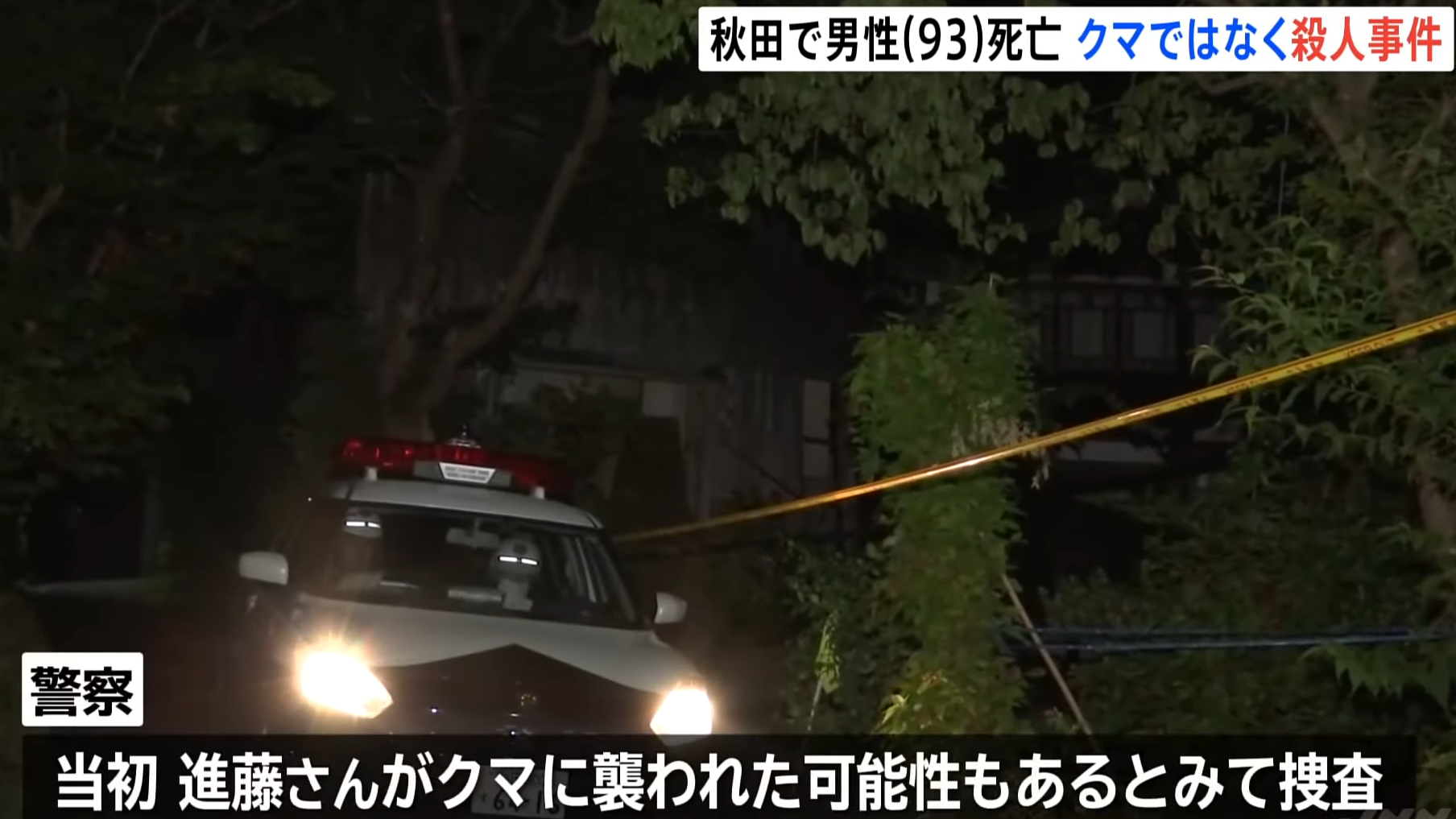 案情大反轉!日本秋田縣一名93歲老翁進藤藤義陳屍住家身亡,疑似遭熊襲擊致死,後來判定為兇殺;警方再三調查,發現真相竟是遭親生兒子殺害。警方已於當地時間21日逮捕其51歲的兒子進藤藤行,以涉嫌謀殺罪名進行偵辦。
