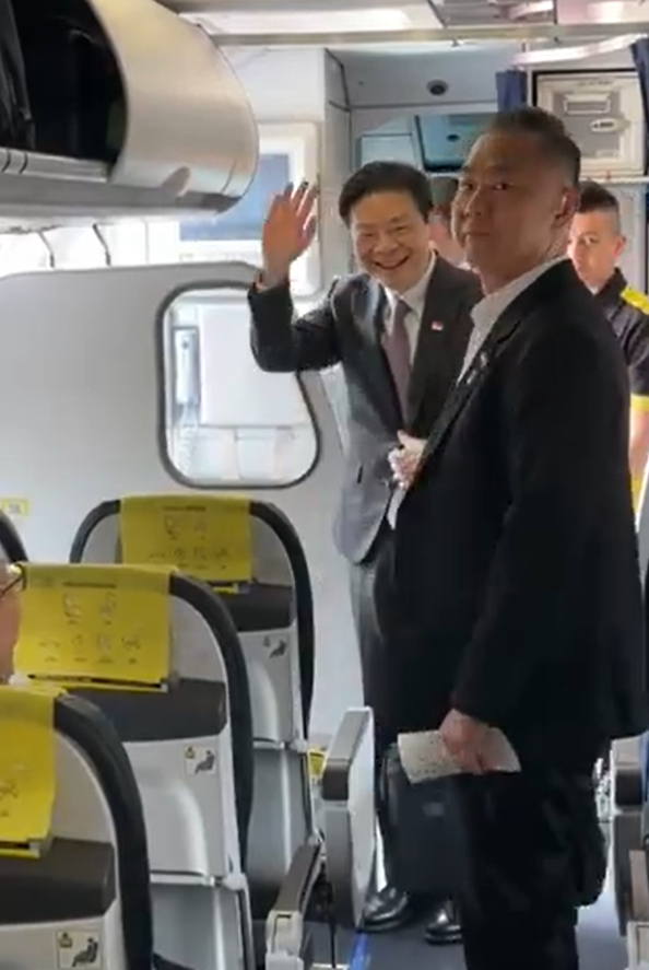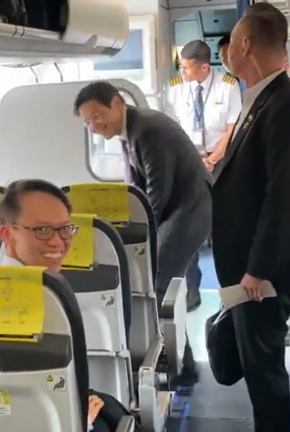 WATCH: The moment PM Lawrence Wong gets on board a scoot flight which is also packed with a group of 40 over Singaporean elderly travellers who’re on tour to Laos pic.twitter.com/lXNG8XbsBG