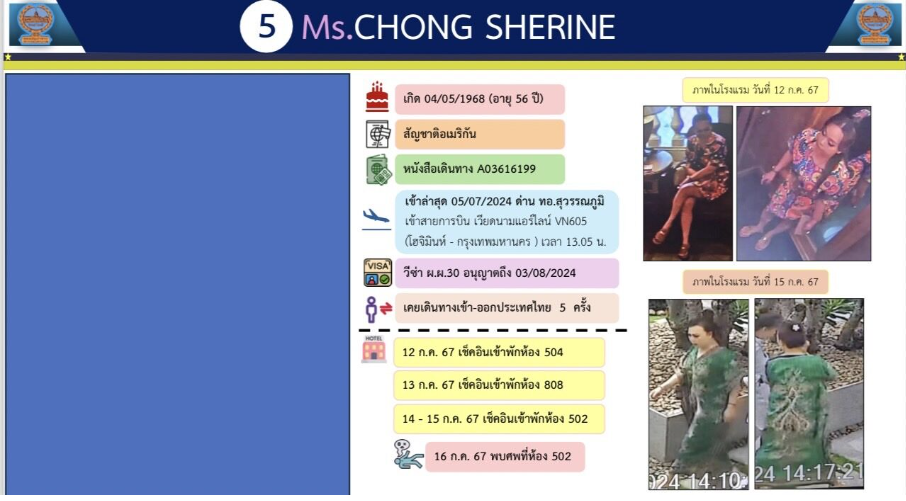 泰媒指其中一名女死者、56歲的SHERINE CHONG是下毒者。(互聯網)