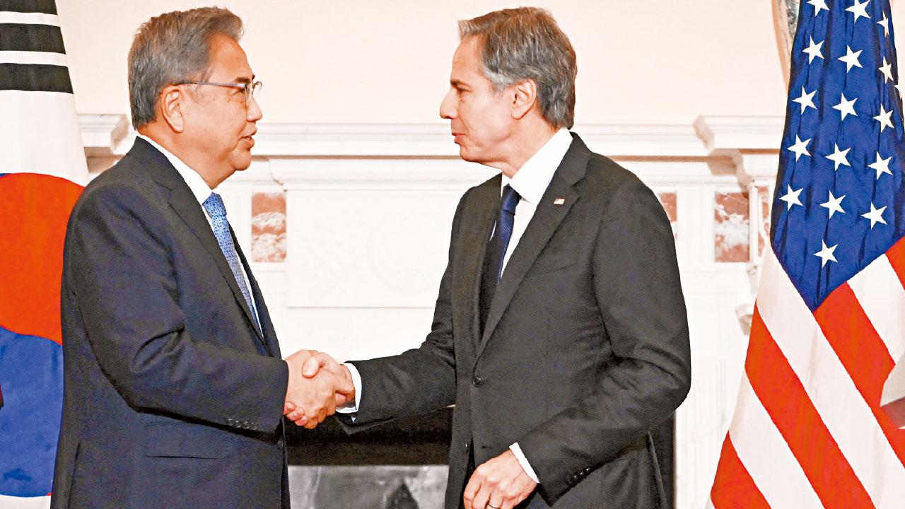 朴振(左)到訪華盛頓,會晤美國國務卿布林肯。 (路透社)