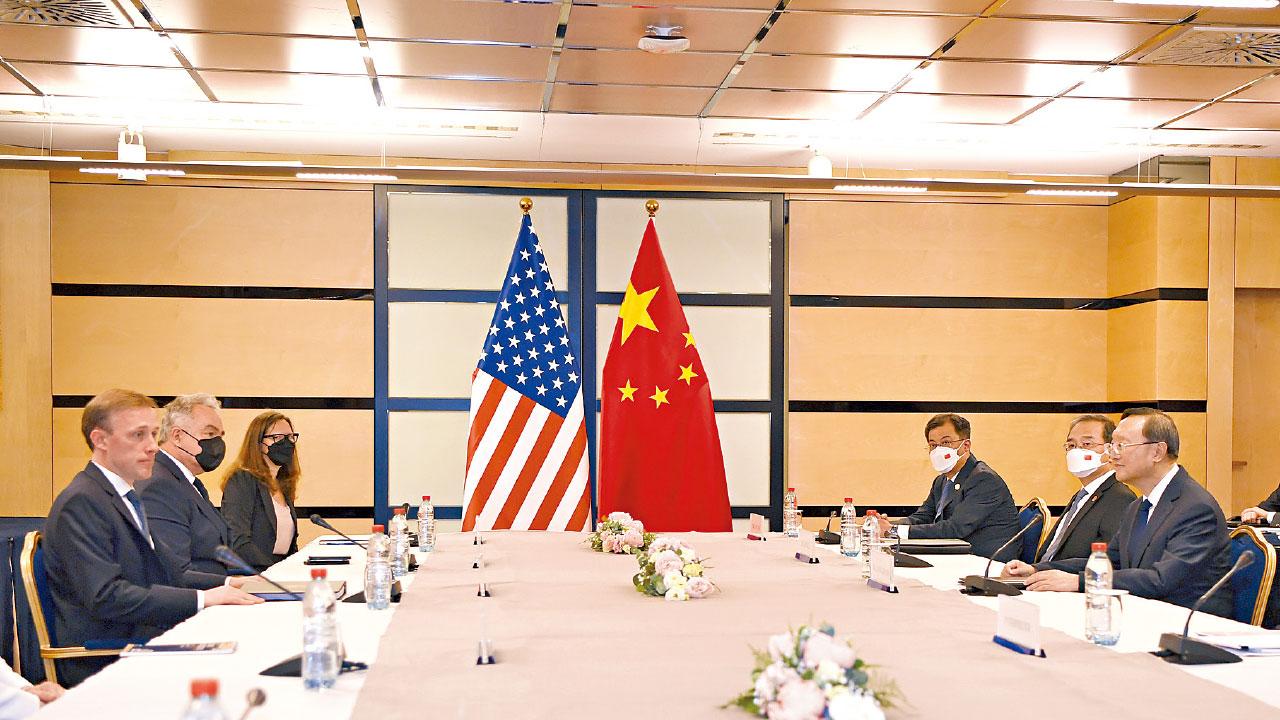 楊潔篪批評美方執意加大對華全方位遏制打壓,不僅解決不了美國自身問題,反致中美關係陷入十分困難境地,強調在捍衛國家主權和領土完整問題上,中方立場毫不含糊、堅定不移。其中台灣問題事關中美關係政治基礎,處理不好將產生顛覆性影響,風險會隨美大搞「以台制華」、台灣當局大搞「倚美謀獨」不斷升高,促美方別有任何誤判及幻想。楊潔篪並就涉疆、涉港、涉藏、南海及人權、宗教等問題闡明中方立場。