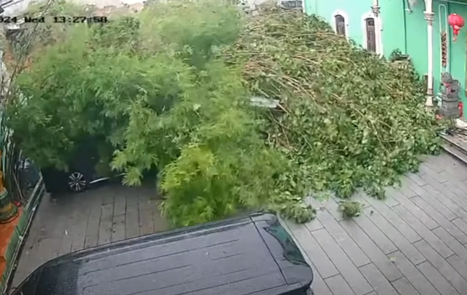馬來西亞檳城上周出現特大暴雨和強風,檳城全島逾20多處地點有大樹被連根拔起,其中在檳城僑生博物館內的停車場內,一對來檳城旅遊的中國父女所乘的SUV車,被突然塌下的大樹壓毀,剛上車不久的父女不幸死亡。