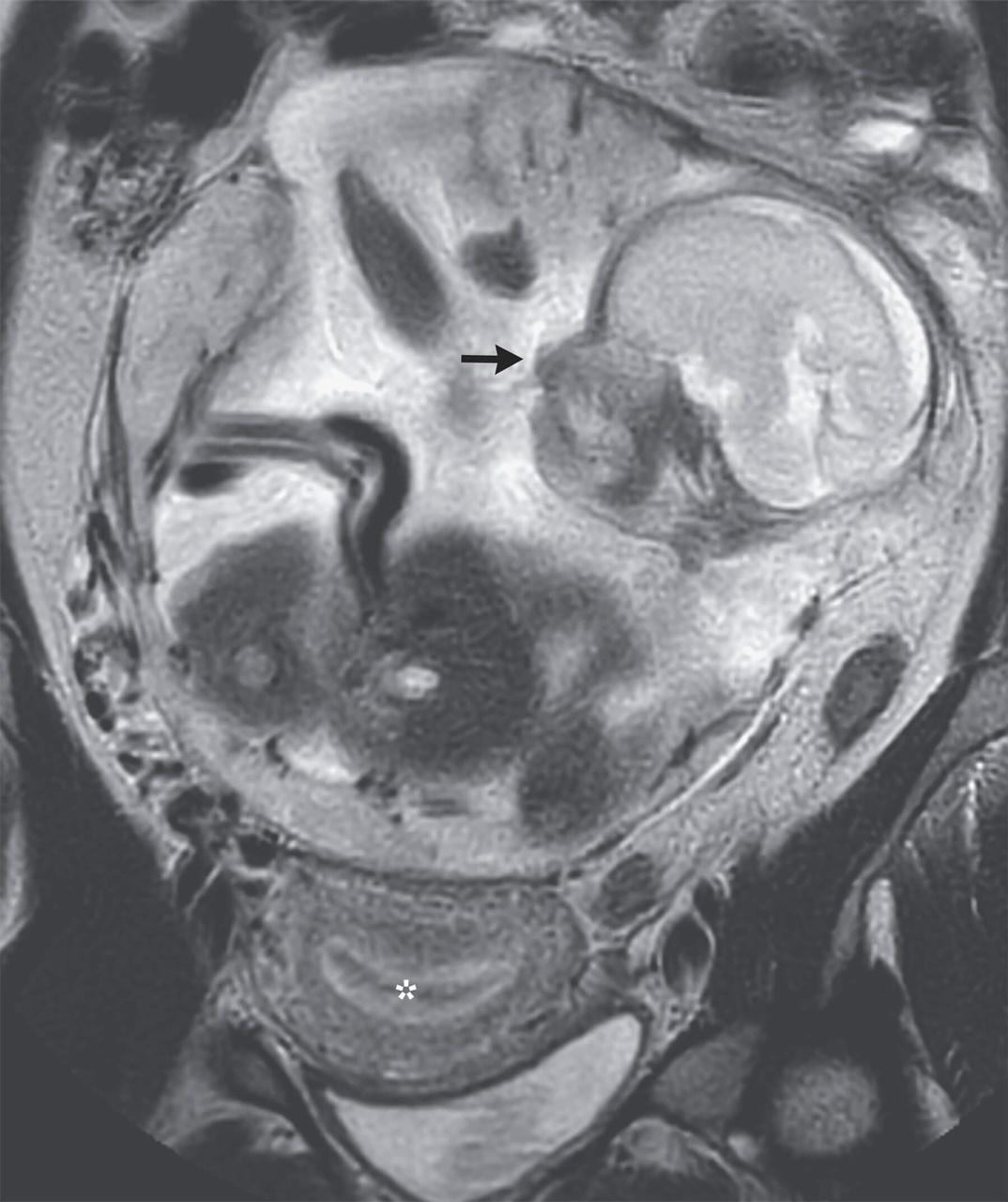 胎兒在胃部與腸道之間子宮外孕,且奇跡地存活並成長至6個月大。(網上圖片)