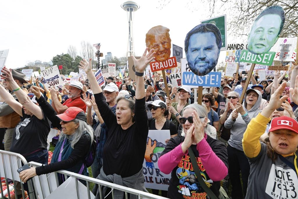 美國總統特朗普的關稅戰震動股市,亦令其第二任期政策引發的民怨在4月5日飆至高峰,全美爆發約1,200場示威活動,海外亦有民眾上街抗議。