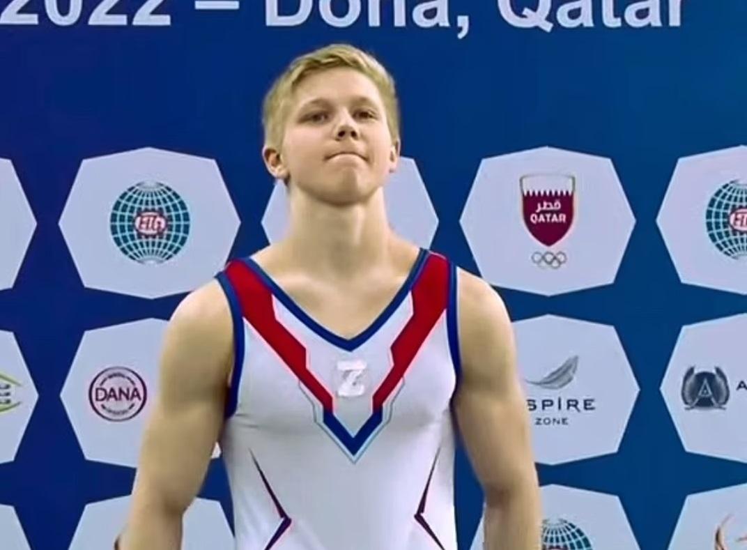 20歲的俄羅斯選手Ivan Kuliak周六(5日)在多哈世界盃體操賽的男子雙槓項目中得銅牌,烏克蘭選手Illia Kovtun奪冠,頒獎時,兩人在台上並排站立,Kuliak穿著貼上代表戰爭勝利Z標誌的運動背心,供傳媒拍照。報道指他去年與俄軍一同接受軍事訓練。