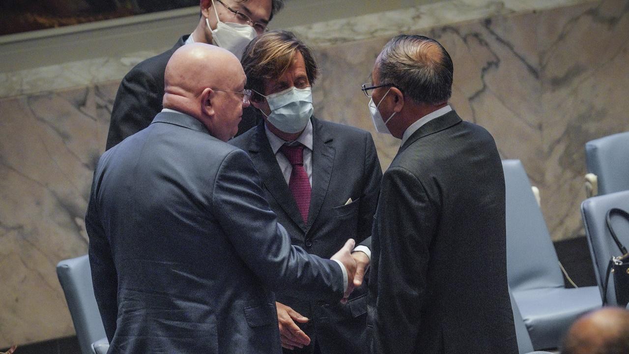 安理會星期二(27日)應烏克蘭要求,就公投召開會議。烏克蘭總統澤連斯基(Volodymyr Zelensky)以視像方式發言,批評俄羅斯意圖複製吞併克里米亞的情況,要求國際社會把俄羅斯逐出所有國際組織,並推出新的制裁措施。俄羅斯駐聯合國大使涅邊賈(Vasily Nebenzya)重申,公投過程透明、符合投票標準,並質疑澤連斯基不應獲准發言。