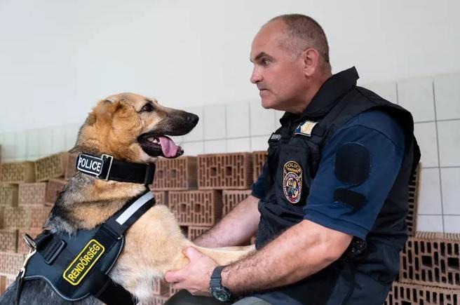 一隻德國牧羊犬在烏克蘭奮勇參戰,在前線受傷失去了部分下顎和右耳,最終在匈牙利警方協助下重獲新生,當上警犬。