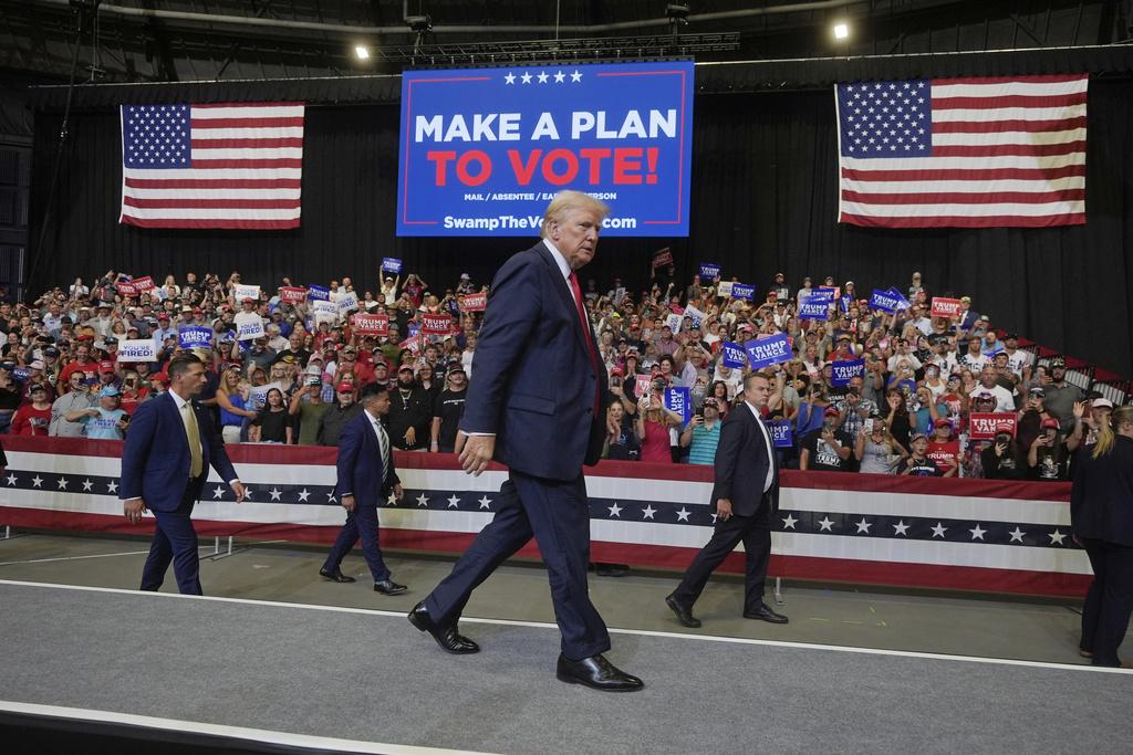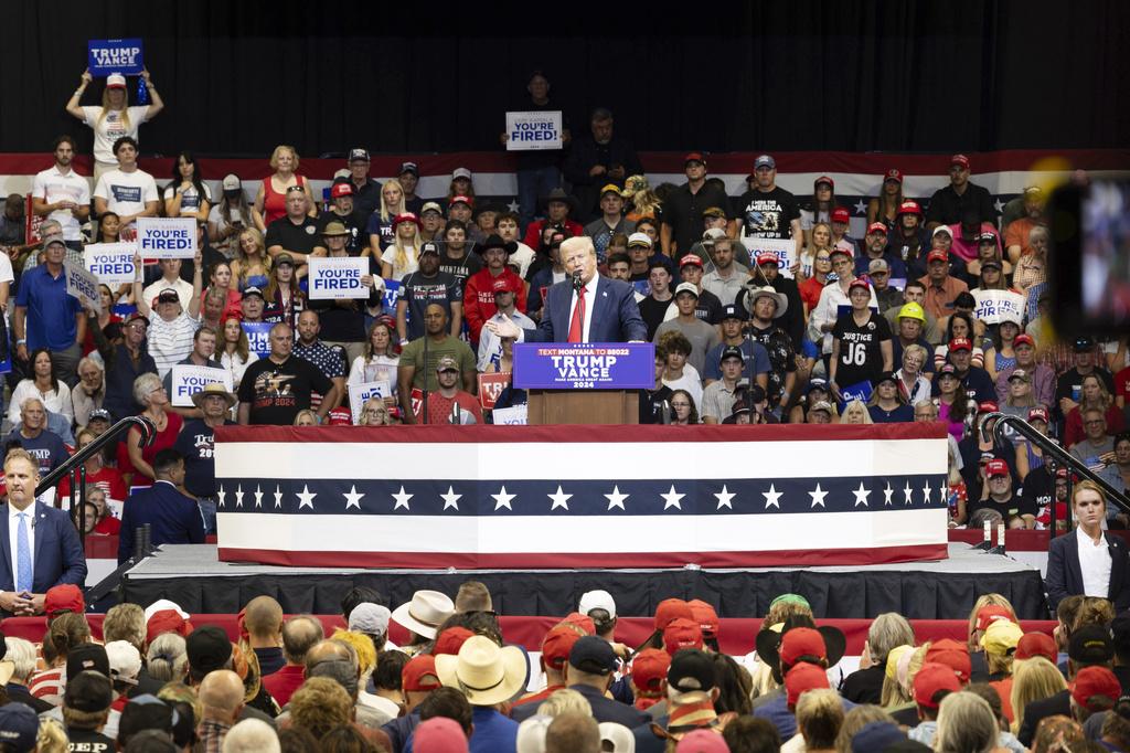 對於民主黨對手賀錦麗,特朗普指她表面上是溫和派,實質是極左,「她是一個極左翼瘋子。若她成為我們的總統,很快就會國不成國。她將恢復她所相信的所有事情」;又聲稱拜登是因黨內「政變」而被迫退選。