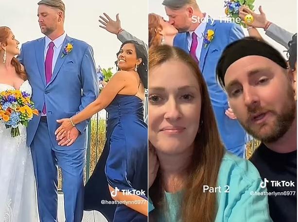 美國一名新娘上載結婚照到社交網,卻引起韓式狗血劇的揣測。照片中新郎站在新娘與伴娘中間,後者的舉動十分可疑,除了翹著新郎手臂,另一張照片更在新郎與新娘深情對望準備親吻時,她的手掌放在新郎手背上,疑似「拖手」。照片引起網友揣測兩人有染,新娘子慘被瞞騙。