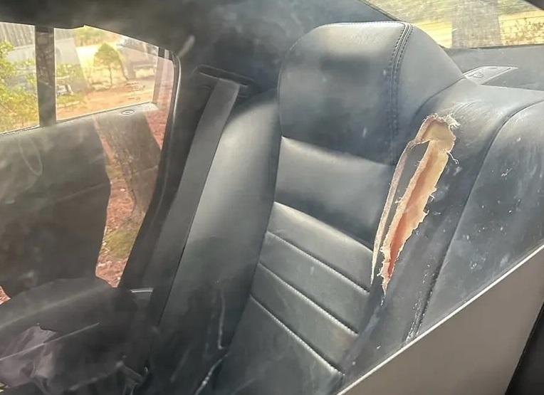 警方上載警車座位被咬爛的照片。(互聯網)