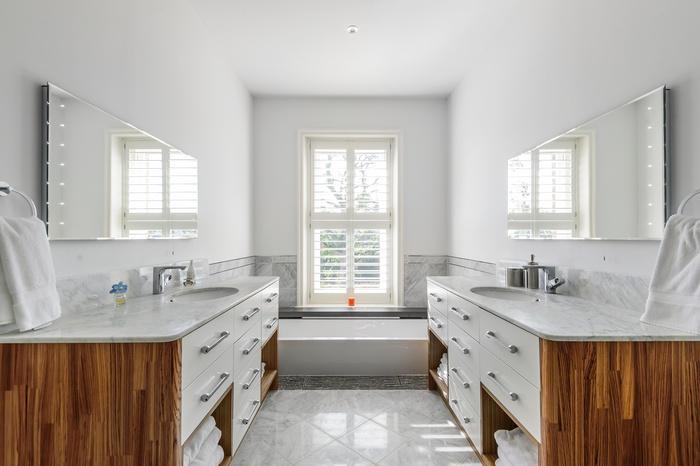 一樓則設有3間套房,有齊浴室及衣帽間,另有兩間大房及一個家庭浴室。頂樓則是個設有一房的大單位。主屋外還有一間設有一個睡房的小石屋,而戶外地面就有巨大花園、池塘、樹屋、滑梯及網球場等。