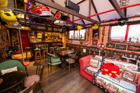 Kevin表示︰「你一進去,就會看到維多利亞時代的消防制服和斧頭,以及直至我退休前所穿的裝備……還有模型消防車和消防栓標誌,一些我收集的小物件。」他並說︰「我盡量保持真實性,吧台是來自Basingstoke消防局的,我當年有份建造,於是問有關方面能否給我」,「它對我來說有著美好回憶。」