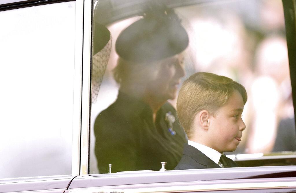 英媒把女王國葬這天稱為「英國最傷心的一天」(Britain's saddest day),喬治及夏治特現身於這個沉重無比的歷史場合,收起平日的活潑俏皮一面,一臉肅穆的送別曾祖母,彷彿成熟了不少。