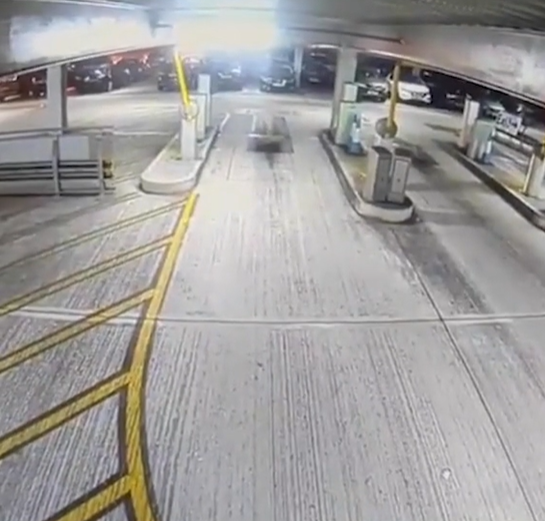 英媒公開閉路電視在事發時所拍片段,可見停車場內一輛汽車突然發生爆炸,烈焰及濃煙迅即席捲全層停車場,導致部分結構倒塌。