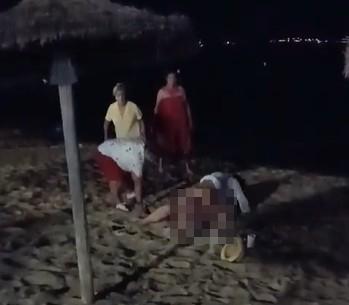 不過這時,有幾名當地大媽看不下去,上前大力打了其中一名女子的臀部,用馬略卡語喝斥她們趕快離開,看到對方沒有動作時,旁邊幾名大媽氣得一擁而上,不停指責並抓起沙灘上的沙子,往她們身上丟擲,最後小情侶才不甘願的分開。