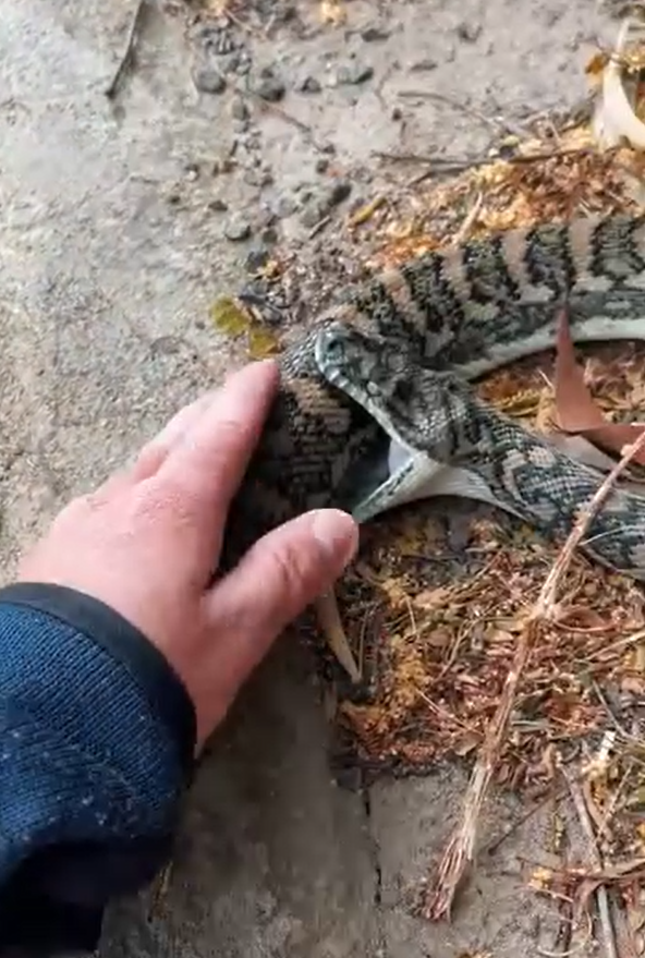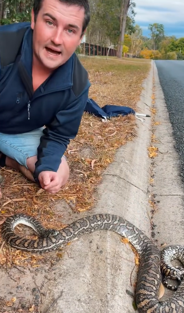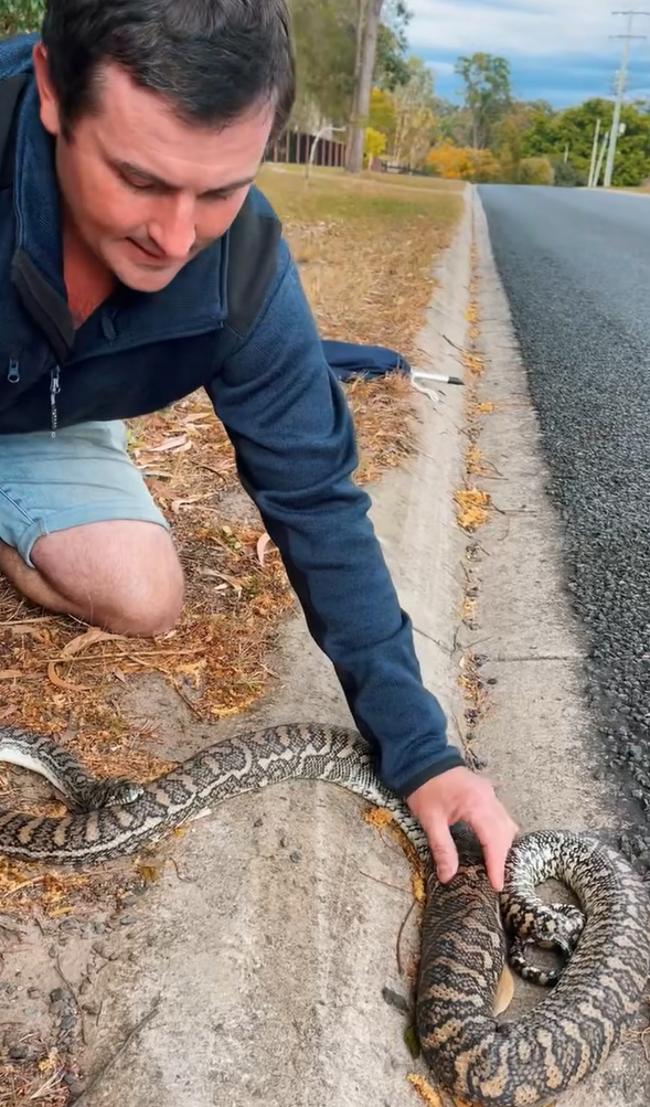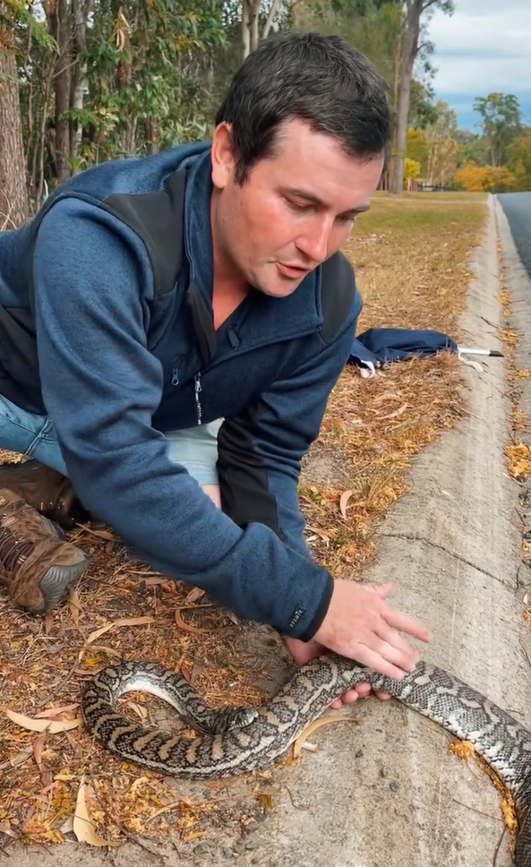 FB專頁Sunshine Coast Snake Catchers發片稱,日前接到要求捕捉一條被車撞到的海地毯蟒(Coastal Carpet Python),但到場後發現牠已經死亡,並可見牠「咬著自己死去」(python dies biting itself),估計該蛇年約7至8歲,並沒有毒。
