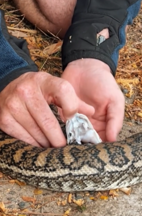 捕蛇專家Brendon ‘Giffo’ Giffor及獸醫Jonathon Howard解釋,蟒蛇這種死狀,指蛇的習性是會去咬一些令牠感到疼痛或害怕的東西,估計該條蛇被車撞後身體疼痛,因此便去咬痛的地方,而這會令牠的牙齒插入並卡住在皮膚中,牠在痛苦下漸漸因傷勢而死去。