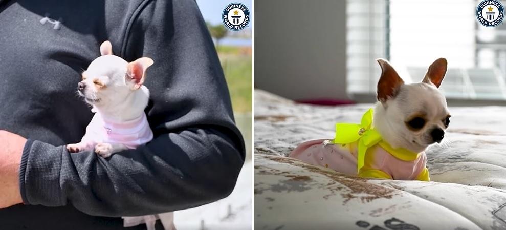 2歲大的迷你芝娃娃「珍珠」獲健力士認證為全球現存最矮狗狗。(互聯網)