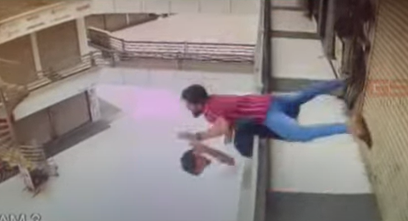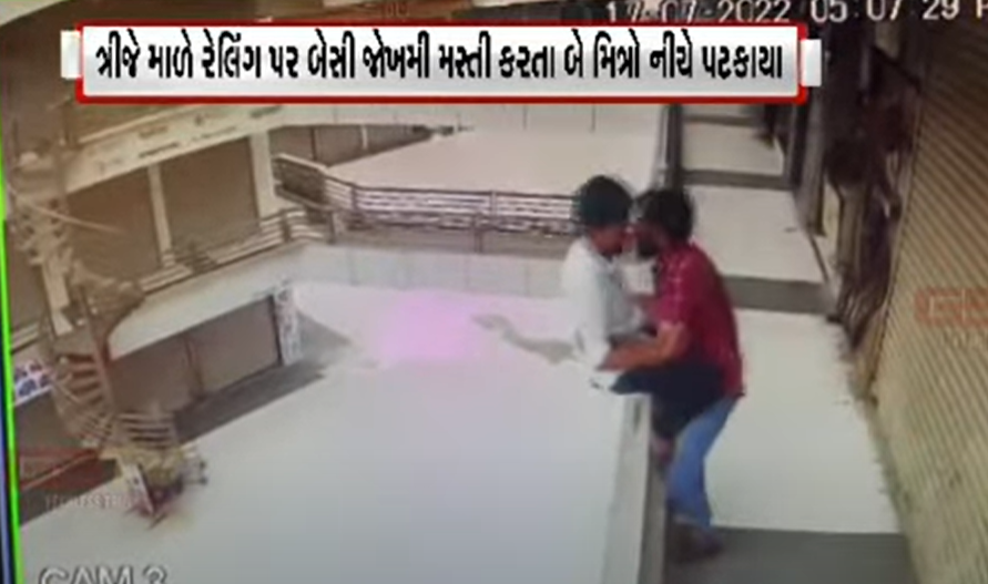 事發於周日傍晚,地點是印度古吉拉特邦城鎮帕拉恩普爾(Palanpur)的大樓Arced complex。片段可見兩名青年在大樓3樓走廊邊行邊傾談,之後有穿白衣的青年加入,然後隨意地坐到欄杆上,背向天井。