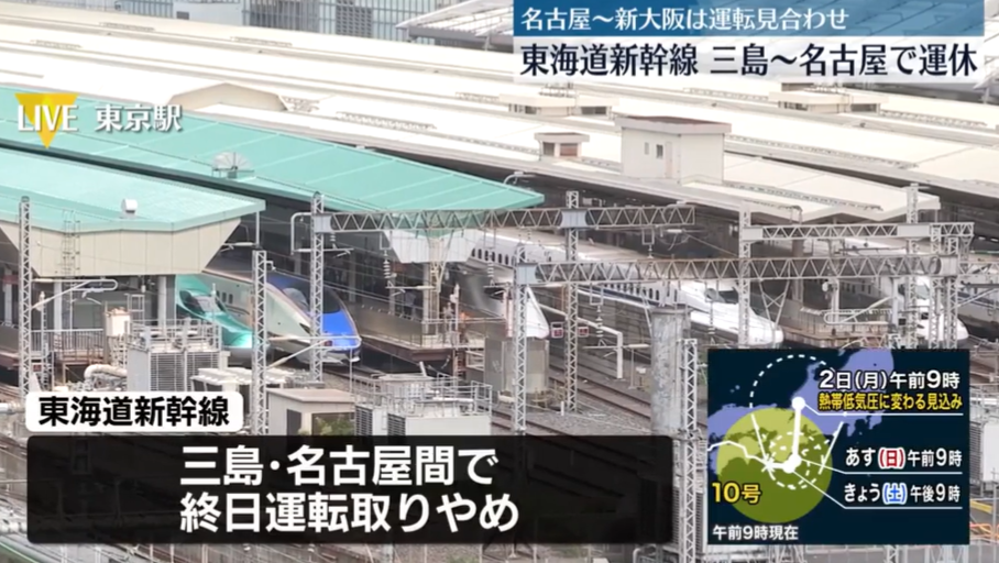 JR東日本表示,受大雨影響,東海道線小田原站至熱海站間的上下行列車停駛。另外,小田急線神奈川縣伊勢原站至秦野站間的上下行列車,因部分軌道路堤遭沖毀,31日全天停駛。小田急電鐵表示,在秦野市上大槻也有2處路堤崩落,目前正在緊急修復。