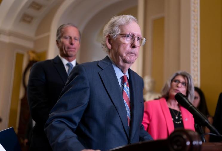 美國參議院少數黨領袖麥康奈爾(Mitch McConnell)已屆81歲高齡,其健康情況再成焦點。他繼7月26日在國會山莊見記者時突然離奇僵住眼望前方後,周三在肯塔基州出席活動時,被記者追問會否在2026年競逐連任,他再次像被「點穴」般不動,也沒有說話。麥康奈爾先是叫記者重覆他的問題,然後瞪眼望著前方約10秒。站在前排的助手問他是否聽不見問題,並重覆記者的提問一次。 麥康奈爾沒有回答,那名助手走到他身旁,並向在場記者說暫停一下,麥康奈爾繼續張眼注視前方,他沉默不說話足足30秒。