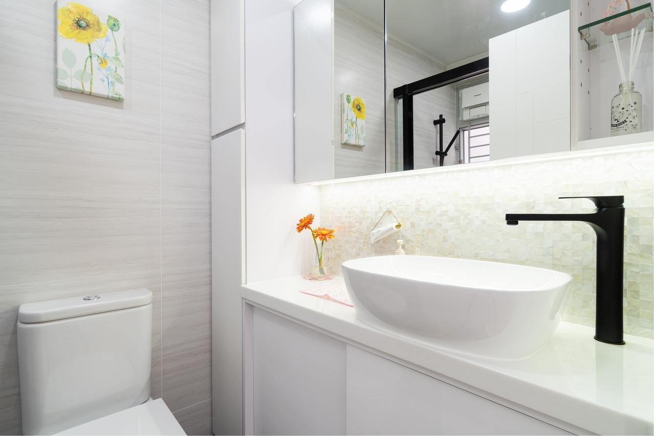 先談一下浴室,近年不少人都喜歡使用檯面盆,貪其夠美觀,事實上,檯面盆造型多變,有方形、圓形,想特別點亦有橢圓形、鵝蛋形等等,比較容易配搭到不同的家居風居及用家喜好,而且安裝上又簡單,即使洗手盆有崩裂破損,更換一個是相當上較容易。
