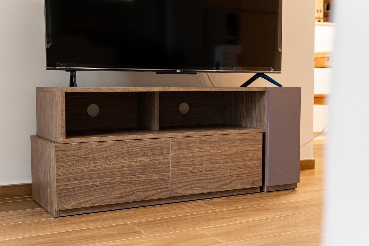 戶主有大量的雜物需要儲存,亦希望居室保持整潔,選擇了訂造多個高身到頂的大型儲物櫃,因為擔心如果訂造地台,貓咪會鑽進地台而構成危險。物料方面,亦盡量使用寵物友善的物料,如戶主擔心貓咪會不斷抓門,於是選用膠物料代替木皮,雖然物料為膠質,但仿木的像真度非常高,除非近距離觀察,否則難以察覺,既美觀又實用。