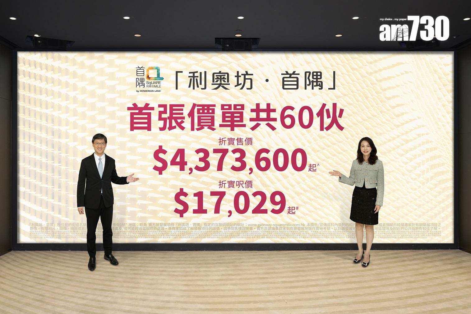 「利奧坊.首隅」周五公布首張價單,涉及60伙,提供最高8%折扣,折實售價由437.36萬元起,折實呎價由17,029元起。