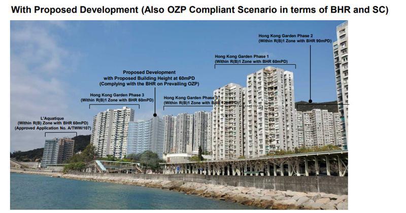 華懋旗下豪景花園旁的一幅臨海露天貨倉用地,擬申建165伙住宅單位,伙數較之前提出的方案增多10%或一成。(資料來源:城規會文件)