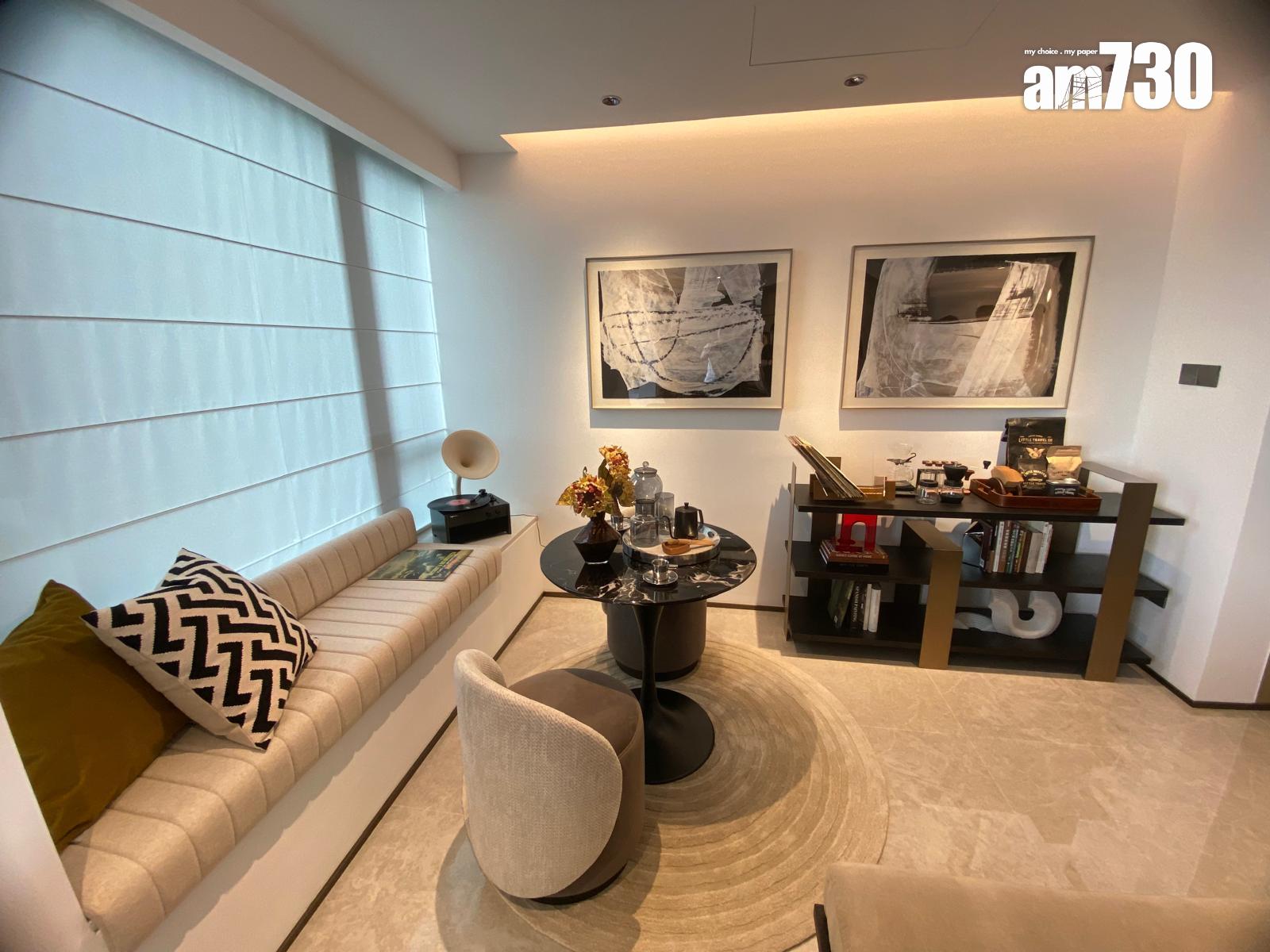 設計師將其中一間睡房融入客廳,進一步提升整體空間感。單位為雙露台設計,客廳與景觀露台相連,廣納戶外自然光線,締造悠然舒適的家居環境。景觀露台亦連接睡房,住戶可享怡人景色。工作露台則可擺放洗衣機及晾曬衣服。