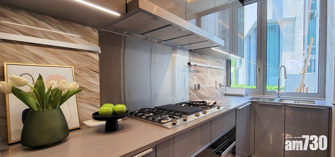 廚房備餐空間充裕,配有不同名牌煮食設備。(蘇文傑攝)