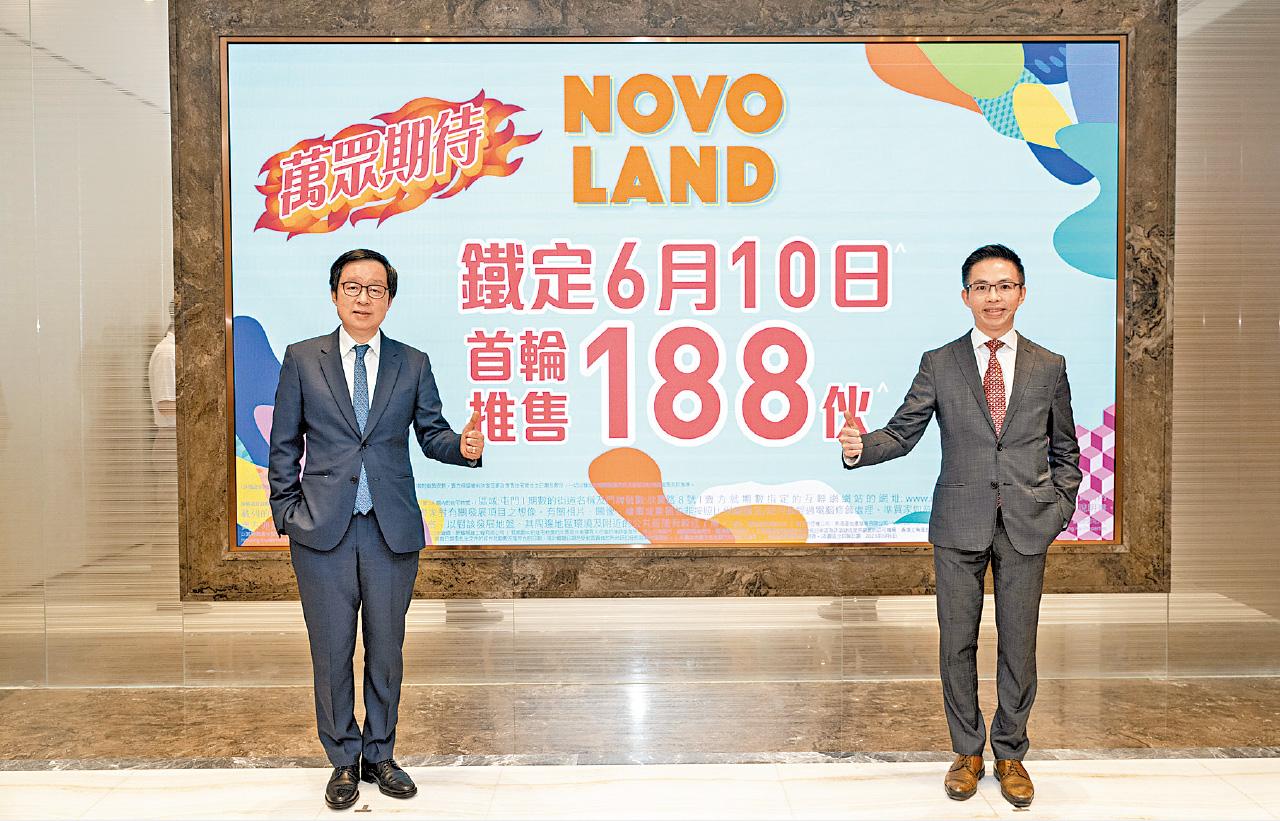 陳漢麟(右)稱,NOVO LAND第2A期暫累收逾3,600票,超額約18倍;左為雷霆。(陳奕釗攝)