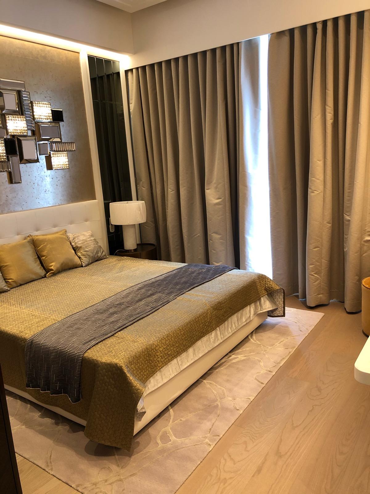 大廳與睡房之間的走廊位,設有不少飾櫃和收納空間,增加了單位的氣派感覺。主人套房面積頗大,設有衣帽間,睡床可三邊下床,地方非常實用見使;主人套房浴室採落地大玻璃窗設計,讓住戶可以一邊浸浴、一邊欣賞窗外美景。至於其餘3個睡房,間隔同樣四正闊落,可以三邊下床,空間充裕。另外,闊大的廚房旁為工人套房,同時設有後門,方便工人姐姐日常出入使用,讓住戶的私隱度更高。